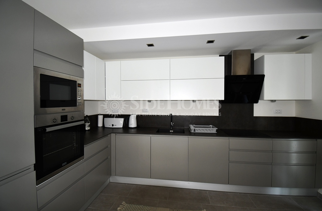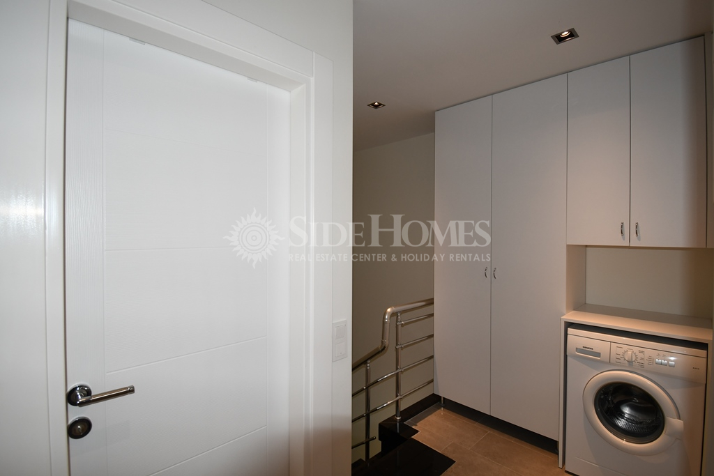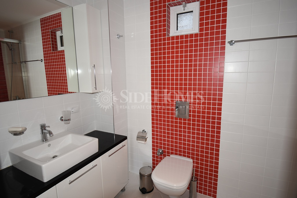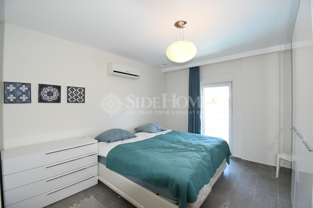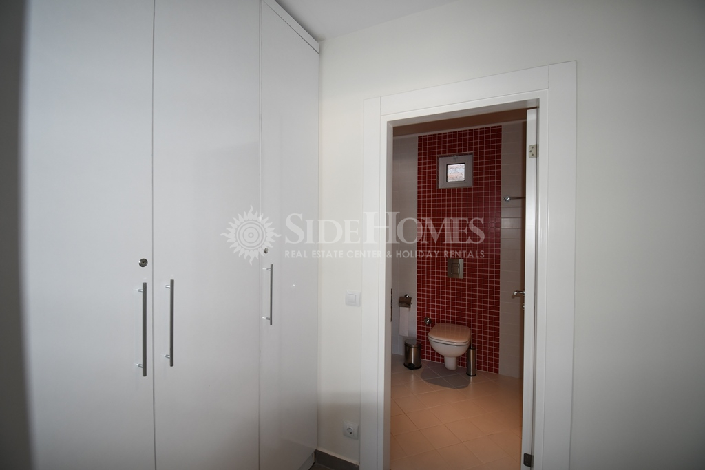 Die 3+1 Duplex Wohnung in Side Aqua Garden bietet modernen Komfort mit funktionalen Wohnbereichen. Die Wohnung im Erdgeschoss ist voll ausgestattet mit hochwertigen weißen Waren und Klimaanlagen sowie einer Heizungsanlage. Im Eingangsbereich finden Sie ein offenes, geräumiges Wohnzimmer mit Zugang zu einer großen Terrasse mit Poolblick, ein Badezimmer und ein Schlafzimmer mit Balkon. Im Obergeschoss befinden sich zwei Schlafzimmer, ein Familienbadezimmer und ein geräumiges Hauptschlafzimmer mit Einbauschränken und einem Jacuzzi-Badezimmer. Beide Schlafzimmer im Obergeschoss haben direkten Zugang zur Terrasse. Die Side Aqua Garden Residence bietet ein ruhiges, gepflegtes und privilegiertes Wohnumfeld mit schattigen Terrassen und einem offenen Swimmingpool mit Wasserfall.