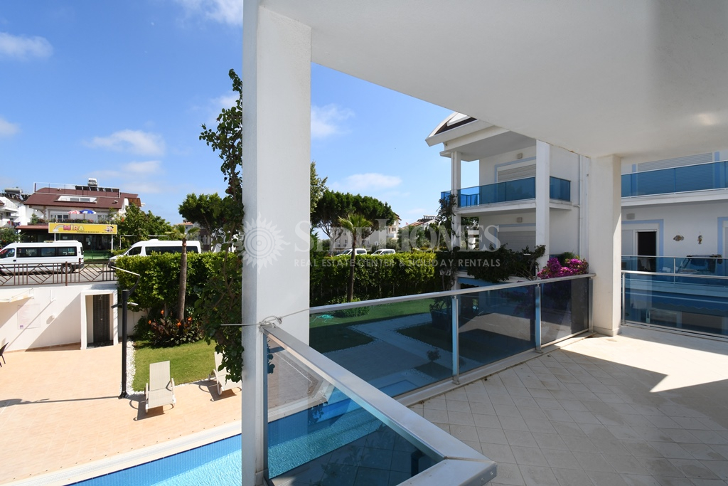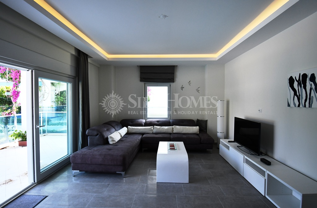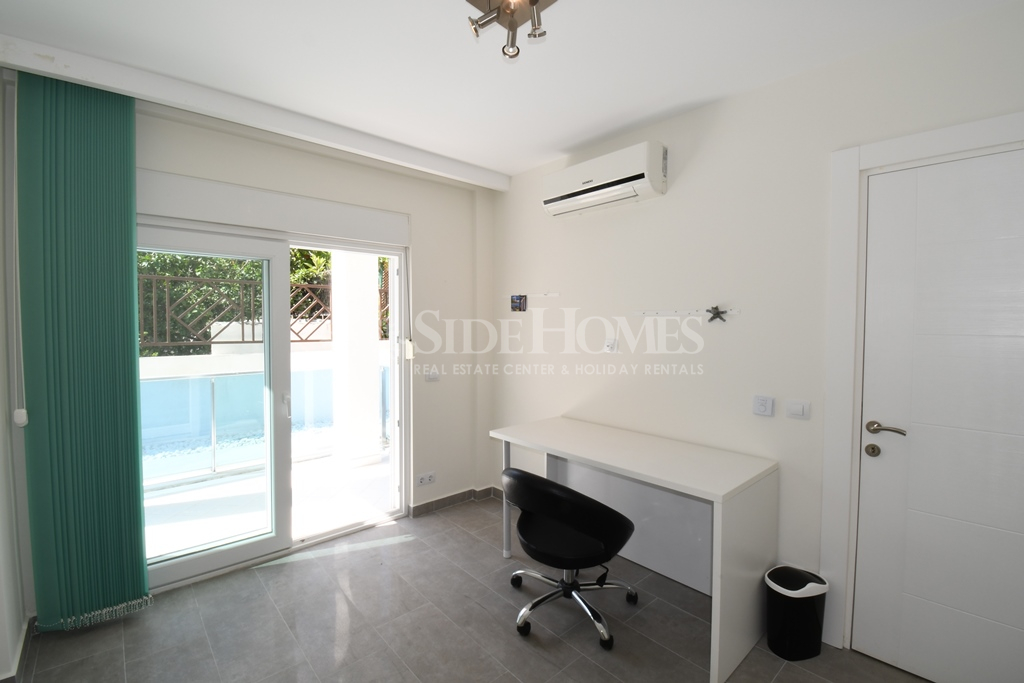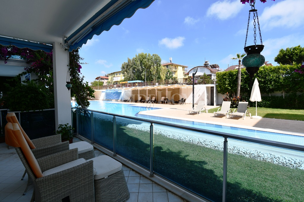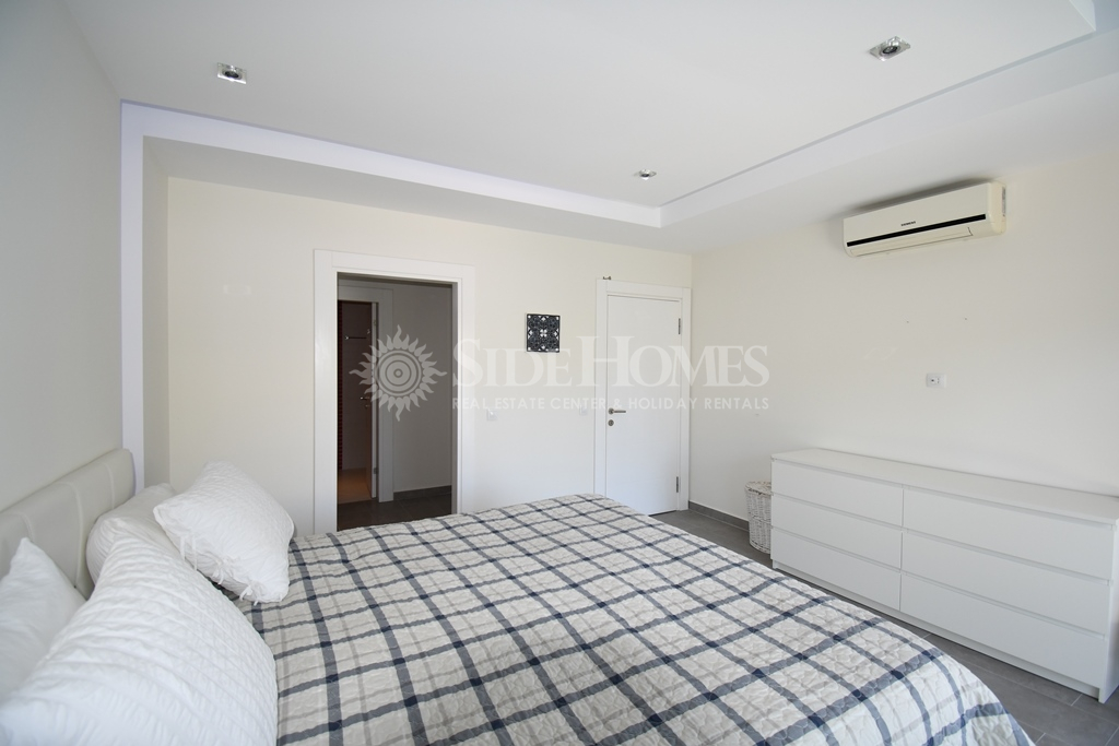 Die 3+1 Duplex Wohnung in Side Aqua Garden bietet modernen Komfort mit funktionalen Wohnbereichen. Die Wohnung im Erdgeschoss ist voll ausgestattet mit hochwertigen weißen Waren und Klimaanlagen sowie einer Heizungsanlage. Im Eingangsbereich finden Sie ein offenes, geräumiges Wohnzimmer mit Zugang zu einer großen Terrasse mit Poolblick, ein Badezimmer und ein Schlafzimmer mit Balkon. Im Obergeschoss befinden sich zwei Schlafzimmer, ein Familienbadezimmer und ein geräumiges Hauptschlafzimmer mit Einbauschränken und einem Jacuzzi-Badezimmer. Beide Schlafzimmer im Obergeschoss haben direkten Zugang zur Terrasse. Die Side Aqua Garden Residence bietet ein ruhiges, gepflegtes und privilegiertes Wohnumfeld mit schattigen Terrassen und einem offenen Swimmingpool mit Wasserfall.