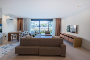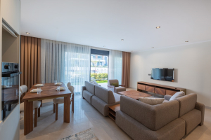 Die Wohnung verfügt über 2 Schlafzimmer, 2 moderne Badezimmer sowie ein geräumiges Wohnzimmer mit einer offenen amerikanischen Küche. Durch die kluge Raumaufteilung und die hochwertigen Materialien entsteht ein angenehmes Wohnambiente – ideal für Paare, Familien oder als Feriendomizil.