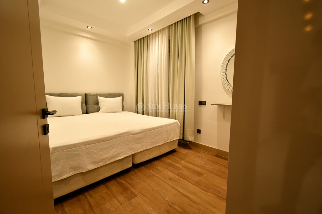 Denize yaklaşık 2,5 km mesafede bulunan daire, günlük ihtiyaçlarınızı kolaylıkla karşılayabileceğiniz süpermarkete sadece 500 metre uzaklıktadır. Hem sakin hem de merkezi bir konumda yer alması sayesinde yaz–kış oturum için uygundur.