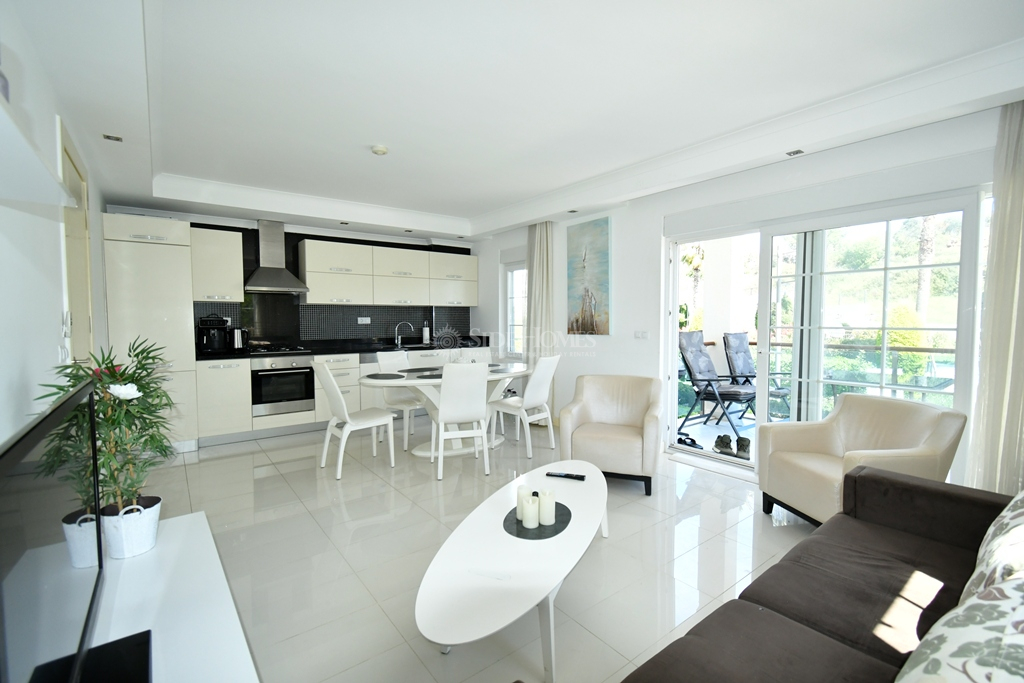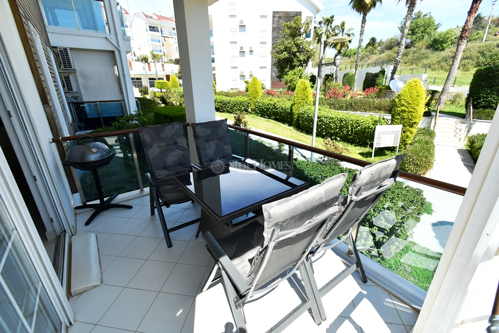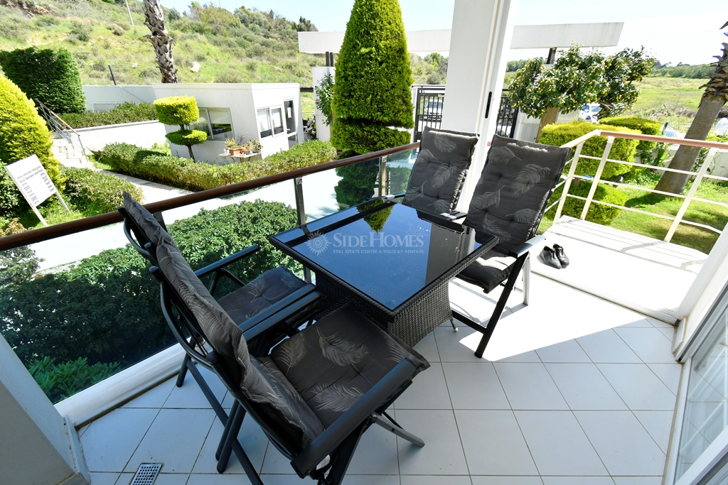 Site girişine en yakın konumda bulunan daire, aynı zamanda denize yakınlığı ile de dikkat çekmektedir. Bahçe manzaralı geniş balkonu, günün her saatinde keyifli vakit geçirme imkânı sunar.