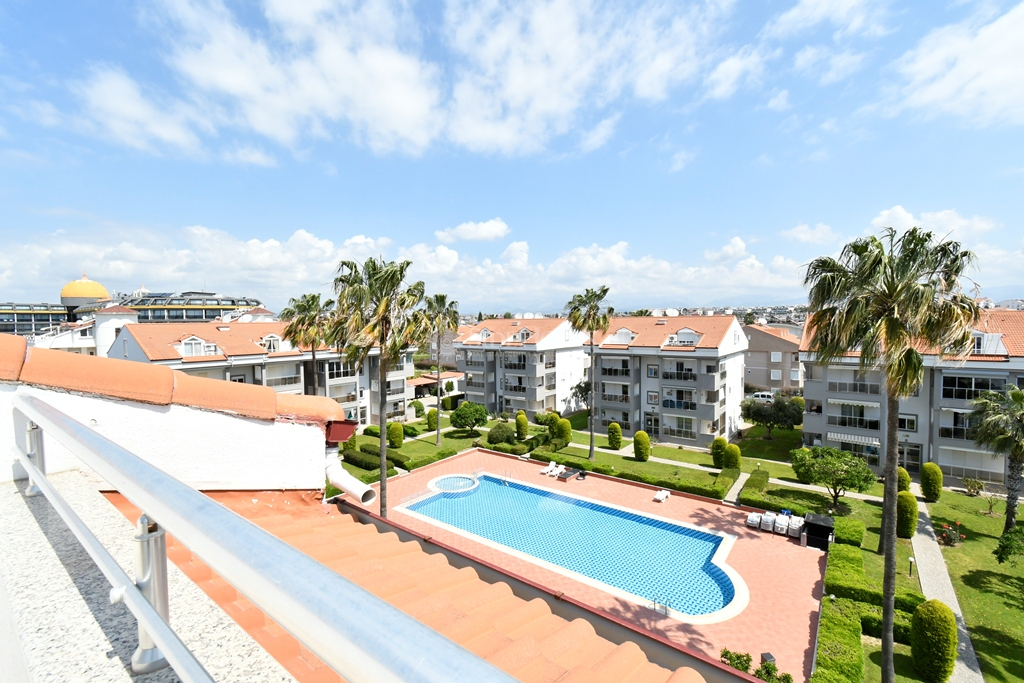 Havuz manzaralı balkonu ve üst katta yer alan geniş terası sayesinde açık havada keyifli vakit geçirme imkânı sunan bu daire, hem yazlık hem de sürekli yaşam için ideal bir seçenektir.