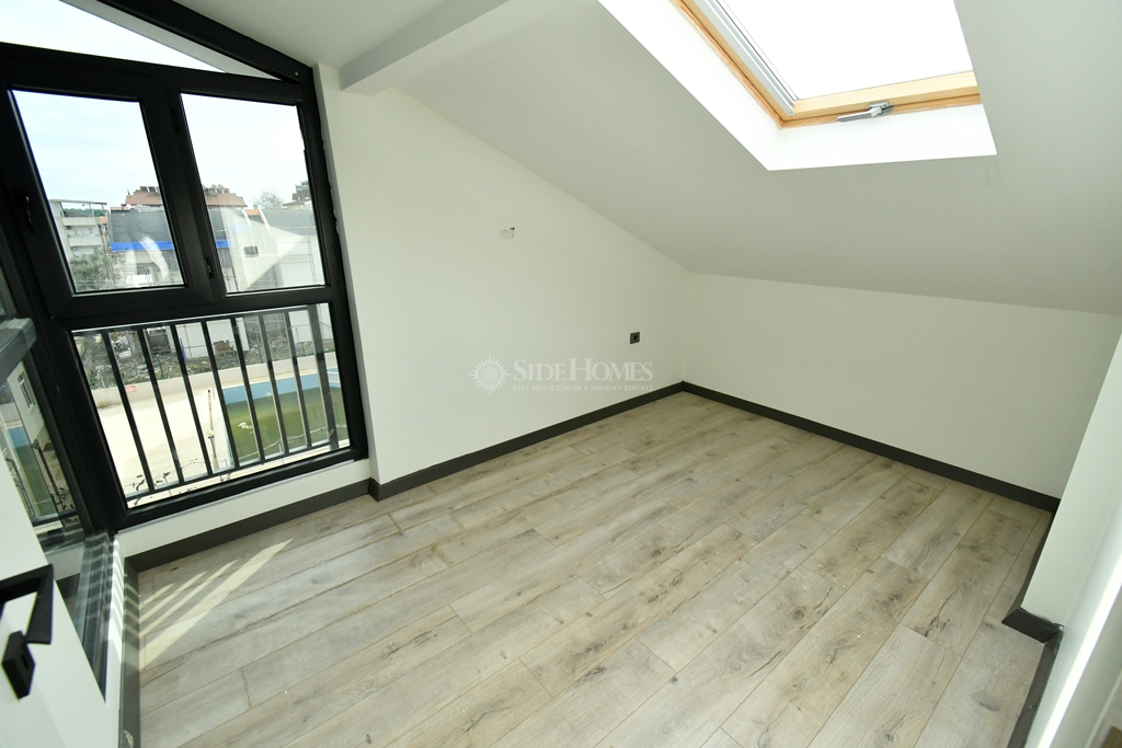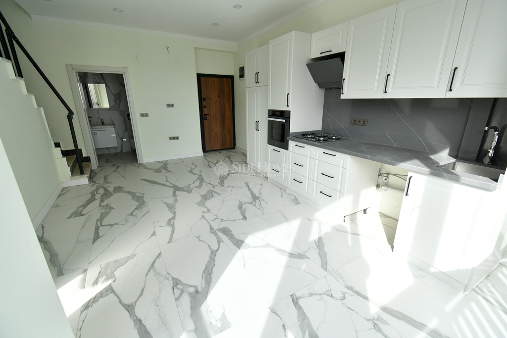 Side Gökçe Apart’ta ayrıca satılık 2+1 dubleks daire seçeneği de bulunmaktadır. Geniş ve kullanışlı iç mekân tasarımına sahip olan bu dairede 2 banyo ve 2 balkon yer almakta olup, özellikle geniş balkonu ferah bir yaşam alanı sunmaktadır. Havuzlu ve butik konseptteki site içerisinde bulunan dubleks daire, hem aile yaşamı hem de yatırım için ideal bir alternatiftir. Side merkezde yer alan konumu sayesinde tüm alışveriş olanaklarına sadece 1 dakika yürüme mesafesinde olup, denize yaklaşık 2 km mesafededir.